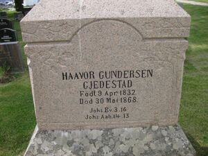 HAAVOR GUNDERSEN GJEDESTAD Født 9. Apr. 1832 Død 30. Mai 1868