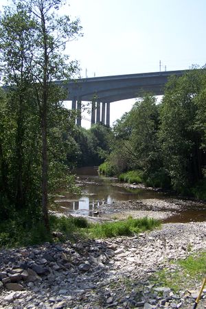 Den nye jernbaneviadukten er plassert lenger ned i Hølendalen, rett utenfor tettstedet. Den er 416 meter lang, og dermed Norges lengste jernbanebro i betong. Høyden er omkring 50 meter på det meste. Den stod ferdig i 1996, og fikk året etter NSBs pris for ingeniørkunst og byggeskikk. Motorveibroene ble åpnet 25. juni 1998; de tre går under fellesnavnet Hølendalen bruer og disse ble i 1999 tildelt Betongtavlen.