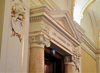 En av Høyesteretts rettsaler i Høyesteretts hus; første avdelings rettsal, den opprinnelige Høyesterettssalen.