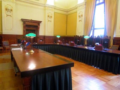 Første avdelings sal, den opprinnelige Høyesterettssalen i tredje etasje, med overlysvinduer.