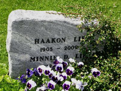 Haakon Lie er gravlagt på Nøtterøy kirkegård sammen med sin andre kone, Minnie. Valg av gravsted skyldes nærheten til deres datter, Karen Lie, som er bosatt på Nøtterøy.