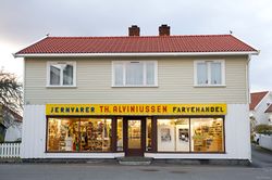| 54/56 | Gnr. 1003/24, «Smehus» (Hus nr. 40). Th. Alviniussen, jernvare- og fargehandel startet i 1926, og butikken er fortsatt i drift med 3. generasjons innehaver, Ivar Alviniussen (pr. 2015). | |