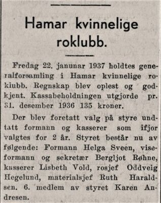 Den kvinnelige roklubben ble i 1970-åra slått sammen med Hamar Roklubb. I 1983 skrev Hamar Arbeiderblad at dette skjedde ti år tidligere,[1] men det ser ut til at de i 1975 fortsatt var en egen klubb.[2]