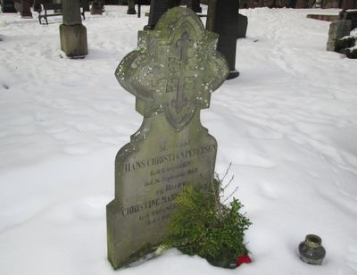 Hans Christian Petersen er gravlagt på Vår Frelsers gravlund i Oslo. Tittelen Statsraad er benyttet.
