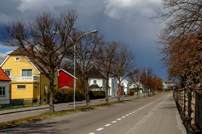 Gata er oppkalt etter lekpredikanten og folkeopplyseren Hans Nielsen Hauge, som ble født på gården Hauge i Rolvsøy mens dette fortsatt var en del av Tune menighet. Langs vestsiden av gata er det mye interessant villabebyggelse fra forskjellige epoker.