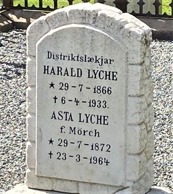 Harald Lyche døde i Valdres, hvor han var bosatt i en årrekke, men er gravlagt ved Lyche-familiens gravsted på Bragernes kirkegård i fødebyen Drammen. I tråd med hans egen konsekvente bruk av nynorsk, er tittelen Distriktslækjar benyttet på gravminnet.