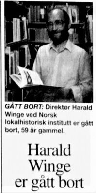 - «Harald Winge er død.» Asker og Bærums budstikke 1999.05.26. Digital versjon på Nettbiblioteket.