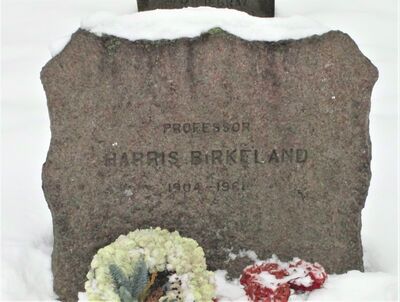 Harris Birkeland er gravlagt på Vestre gravlund i Oslo. Tittelen Professor er benyttet på gravminnet.