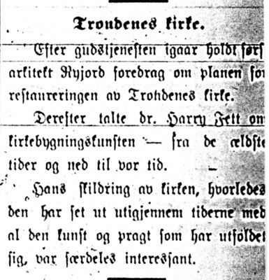I forbindelse med Harry Fetts 80-årsdag skrev daværende riksantikvar Arne Nygård-Nilssen (Fetts etterfølger) et lengre gratulasjonsskrift for Aftenposten, trykket i morgenutgaven 8. september 1955 (utdrag):