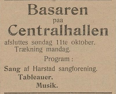 De siste spor etter sangforeningen finner vi i form av en ny annonse, den om basaren på Centralhallen i oktober 1903. Hva som så skjer, og hvordan det gikk med Harstad Sangforening, virker å være vanskelig å finne ut av.