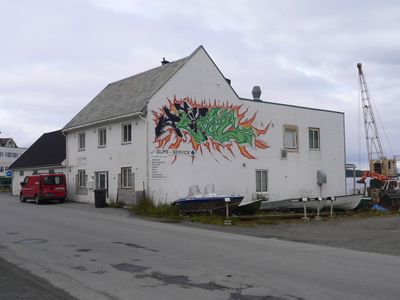 Grafittien på veggen ble laget av grafittikunstner André Eriksen, utført som en del av Festspillene i Nord-Norge 2005.