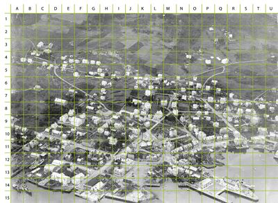 E-7: «Generalboligen» og Gymsalen, mens huset huset i C-6 er identisk med generalboligen og brant ned i 1957. A-7 viser litt av Stabssjefsboligen som fortsatt står der. EF-9 viser Befalsskolebygningen og Majorboligen. Førstnevnte brant i 1970 og Majorboligen ble senere revet. A-9 viser litt av kaserna i Storgata 30 som fortsatt står der. Forsvaret leide også en tid Storgata 13, Gaardekaserna (E-11).