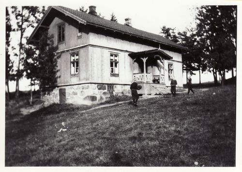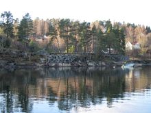 | Jeg husker isdammen ble bygget og vi satt midt på jordet ved en stor sten før vannet ble sluppet paa. Saa husker jeg at den første dæmningen nordenfor den nuværende sprængtes og vannet flommet nedover mot Blylagbukten. | ||