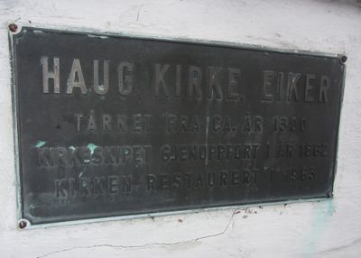 Som hovedkilde om kirkens historie er brukt Ole G. Mosengs framstilling i Eikers historie bind 2 (1994), s. 20ff, mens opplysninger om inventaret i stor grad er hentet fra heftet Haug kirke, Eiker av Arne T. Wisløff. Dette er supplert med opplysninger fra Nils Johnsens Eker (1914).