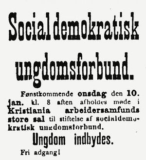 Da Jacob Vidnes, Harald Hansen, Anders Buen og Olav Kringen inviterte til stiftelse av et Socialdemokratisk ungdomsforbund i Kristiania Arbeidersamfund den 10. januar 1900 var Helene Ugland blant de 175 tilhørerne som ble igjen og sa seg interessert i å være med. Ja. mer enn det: Hun ble som en av seks kvinner innvalgt i det første styret for Kristiania Sosialdemokratiske Ungdomslag, som besto av 12 medlemmer[3]. Dette ble forløperen til Norges Socialdemokratiske Ungdomsforbund som ble stiftet tre år seinere og som Jacob Vidnes også har fått æren for. Imidlertid var Helene temmelig «glødd» hin kalde vinterkveld. Underveis hjemover gikk hun nynnende på «Marseillesen» og i løpet av nattetimene meislet hun ut et utkast til «Vor første gave», som Christian Holtermann Knudsen fikk trykket og gitt den anerkjennende karakteristikk «Ungdommens kampsang». Dessuten skrev hun prologen til foreningens festaften omtrent en måned etter stiftelsesmøtet.