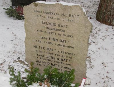 I folketellingen for Kristiania for 1910 er Batt, kona Solveig og sønnene Finn og Jens registrert på adressen Professor Dahls gate 7.