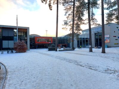 Hjalmar Johansen videregående skole, Moflatvegen 38 i Skien, ligger til tilknytning til Skien fritidspark på Klosterskogen.