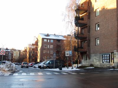 Blokkbebyggelsen med det 14 etasjes høye punktblokken ble utbygget i årene 1948 til 1953.