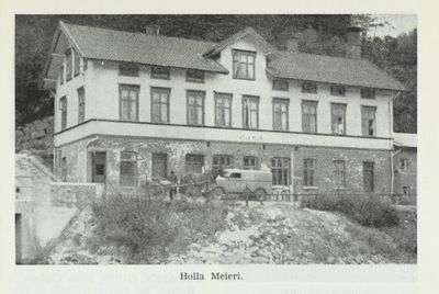 Holla Meieri låg like ved brygga ved Telemarkskanalen på Ulefoss. Meieriet hadde 150 leverandørar og mottok i 1939 1,5 millionar kilo mjølk. Mjølka vart distribuert gjennom tre utsalsstader på Ulefoss, samt ved hjelp av meieriets mjølkebil. I tillegg produserte meieriet smør og ost som også vart solgt andre stader i Telemark. I 1939 vart det produsert 45 000 kg smør og 35 000 kg ulike ostar.
