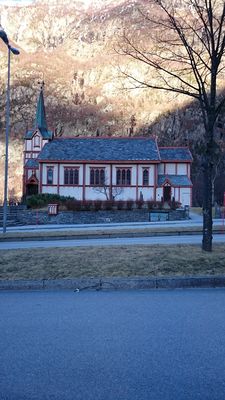 Kyrkja som står på staden i dag vart oppført etter at den tidlegare kyrkja blas ned under ein storm.
