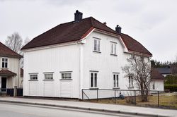 | 55/57 | Gnr. 101/7, «Bjerva østre». Tomta utskilt til Lunde forbruksforening i 1871. Eiendommen solgt til Lunde hovedsogns kommune i desember 1928. Tidligere Lunde trygdeheim (før 1964: Lunde gamleheim) fram til ca. 1976. Siden barnehage, Lunde helsestasjon, legesenter og Lunde tannklinikk. Tilbygget av mur er fra tida det var gamleheim her. Disse bodde her i desember 1900: Handelsbestyrer Gunnar O. Valen (f. 1869) fra Bø, hans kone, Maren K. (f. 1863) fra Holla og deres sønn, Olav (f. 19. oktober 1900). Videre, barnepike Hulda J. Hagberg (ikke voksen) (f. 1888), lærerinne i folkeskolen, Aslaug J. Vale (f. 1881) fra Holla og handelsbetjent Erik T. Norheim (f. 1876). |