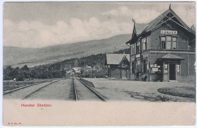 Hunder stasjon, tegnet av Paul Due og oppført av Strømmen Trævarefabrik.