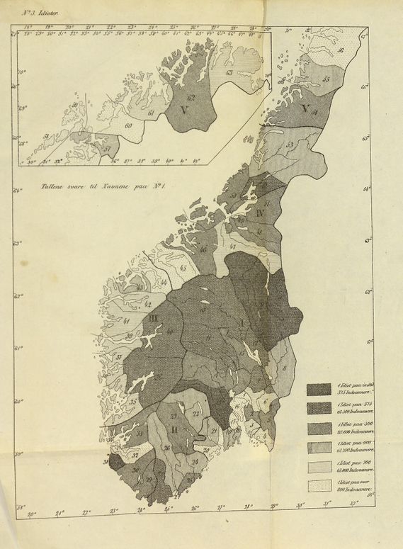 Dahl pekte på et gjennomgående skille mellom byer og kyst på den ene siden og innland på den andre. Tettest konsentrasjon fant Dahl i Trøndelag og i Opplandene. Her kommer Østerdalen ufordelaktig ut. Sitat: «[D]et paa [Kort] No. 1 fremtrædende Mørke i Østerdalens og Kongsbergs Provstier, sees væsentlig at skyldes de i disse Distrikter tilstedeværende talrige Idioter.»[1]