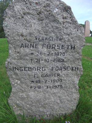 Ingeborg Forseth (født Cahier 18. juli 1900, død 29. mars 1975 på Nesbyen) var datter av den svenske godseieren Charles Cahier og Thyra f. Birg. 28. april 1922 ble hun gift med den 30 år eldre Arne Forseth, direktør i Christiania Glasmagasin. Bryllupet sto i Landsberg am Lech, Bayern i Tyskland.