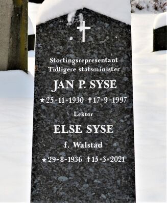 Jan P. Syse er gravlagt på Vår Frelsers gravlund i Oslo sammen med sin kone.