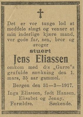 - ↑ Jens Eliassen i folketelling 1910 for Bergen kjøpstad fra Digitalarkivet.