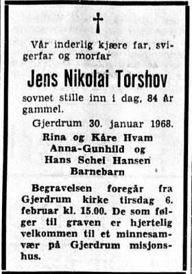 Jens Nikolai Torshov vokste opp på Torshov i Nordbygda i Gjerdrum.