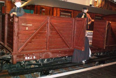 Her er bilder av det tidlige togmateriellet i språkdrakten fra 1904. Merk den åpne passasjervognen for 3. og senere 4. klasse. Vognen hadde ikke faste seter, passasjerene måtte stå eller sitte på sin medbrakte bagasje.