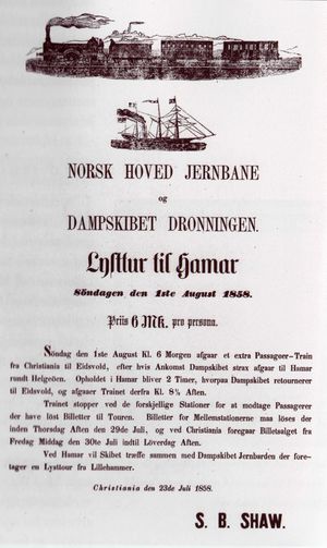 | Ser vi på reisen fra Christiania til Trondhjem var utviklingen slik: | |