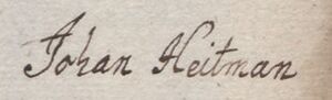 Johan Hansson Heitmann var son av Hans Henriksson Heitmann (ca 1636-1696), namnet på mor hans er ukjent.