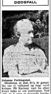 - Johanne Ferkingstad i Historisk befolkningsregister.
