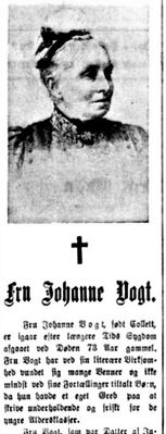 - Johanne Vogt på Wikipedia på bokmål og riksmål.