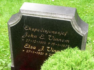 John Elias Vinnem er gravlagt på Ullern kirkegård i Oslo. Tittelen Ekspedisjonssjef er benyttet på gravminnet.