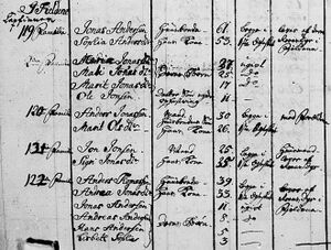 Ifølge folketellingen for 1801 for Tolga[11] var det 24 samer (den gang omtalt som "fjeldfinner") fordelt på fem familier som "lever af sine Reinsdyr i Fieldene". Jonas og Maria Sophia med tre ugifte barn og ett fosterbarn er en familie. Datteren Andrea Jonasdatter og hennes mann Anders Thomasen og deres tre små barn en annen. Så er det sønnen Anders Jonassen og hans kone og datteren Sigri Jonasdatter og hennes mann. Antakelig har disse familiene drevet sammen.