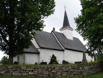 Presten stod netop for alteret og messede, da det første stød merkedes som et rystende bulder med underjordiske dybe drøn. Straks derefter saaes den metertykke altergavl at synke, og en aabning paa 4-5 tommer blev synlig oppe ved taggesimsen. Derpaa løftedes atter muren, pressedes opp mot loftet, og sten og kalk føg indover alteret og gulvet, samtidig med at langvæggene svaiede sterkt; hele alterpartiet gyngedes og syntes at synke i grus. Menighed og prest styrtede til udgangen og merkelig nok, ingen kom synderlig tilskade, men kirken er i den grad ramponert, at den ikke mere lader seg restaurere.