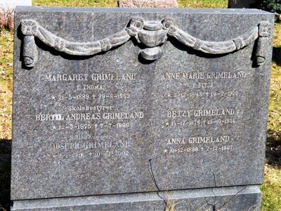 Joseph Grimeland er gravlagt i familiegrav på Vestre gravlund i Oslo.