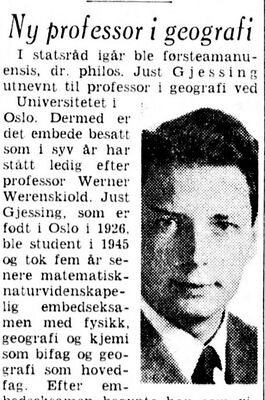 - Aftenposten 7. januar 1961, om utnevnelsen av Just Gjessing til professor ved Universitetet i Oslo.