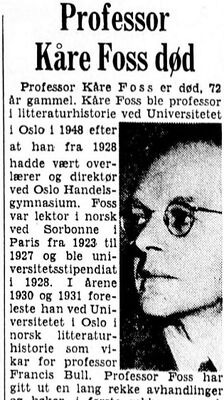 - Aftenposten 23. oktober 1967: nekrolog over Kåre Foss.