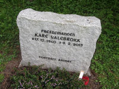 Kåre Valebrokk er gravlagt på Vestre gravlund i Oslo. Tittelen Pressemannen er benyttet på gravminnet, som også har påskriften Fortsatt savnet, valgt av ham selv, og ment som en humoristisk bemerkning til familiens påstand om at han var sjelden hjemme.