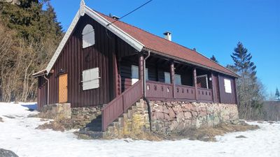KIF-hytta ligger midt i bildet, under den vestre bygdeborgen på Kolsås