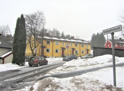 Bebyggelsen ved veien hører til Nedre Kalbakken borettslag.