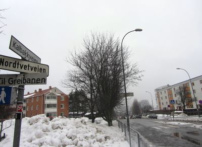 Bebyggelsen ved Kalbakkveien består blant annet av blokker som tilhører Engsletta borettslag og Flaen borettslag.