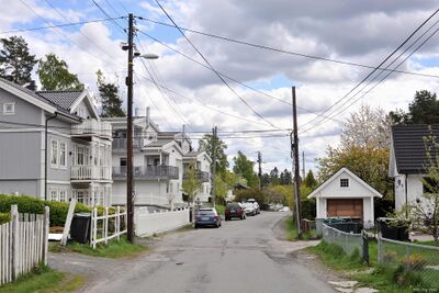 Kaptein Oppegaards vei sett sørøstover med nr. 11 til venstre.