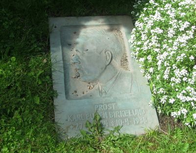 Karl Eugen Birkelund er gravlagt på Ullern kirkegård i Oslo. Tittelen Prost er benyttet på gravminnet.