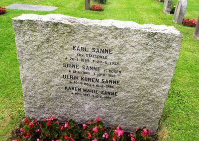 Kare Sanne er gravlagt på Vestre gravlund i Oslo. Tittelen Fhv. statsråd er benyttet på gravminnet.