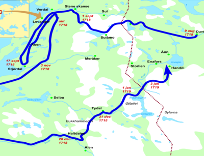 Først den 7. januar 1719[1] fikk general Armfeldt vite at Karl XII var død. Han sto da med sine styrker i Haltdalen. Korteste vei hjem til Sverige fikk over til Tydalen og deretter over Tydalsfjellene til Åre i Jämtland. I utgangspunktet skulle dette vært overkommelig. Rett nok var styrken på omkring 6000 mann dårlig ustyrt, men det var barfrost i lavlandet og lite snø i fjellet. Dermed skulle det være mulig å ta seg over uten ski og vinterutstyr.